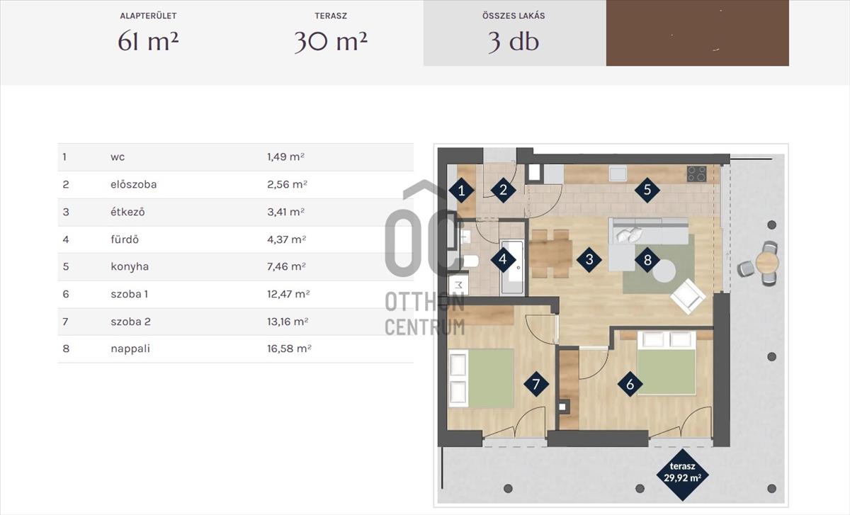 7 db 61 m2 lakás 30 m2 terasszal