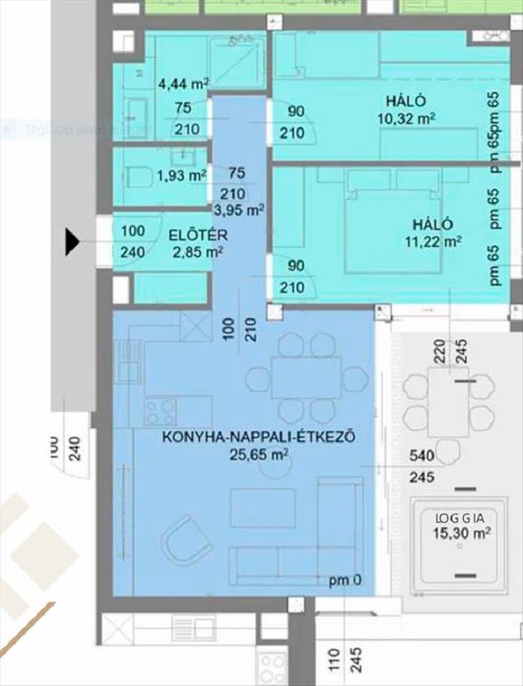 A hirdetésben szereplő lakás 60, 34 m2 lakóterületű + 15, 3 m2 loggia, 1 + 2 szobás, első emeleti. Igény esetén két hálószobássá alakítható.