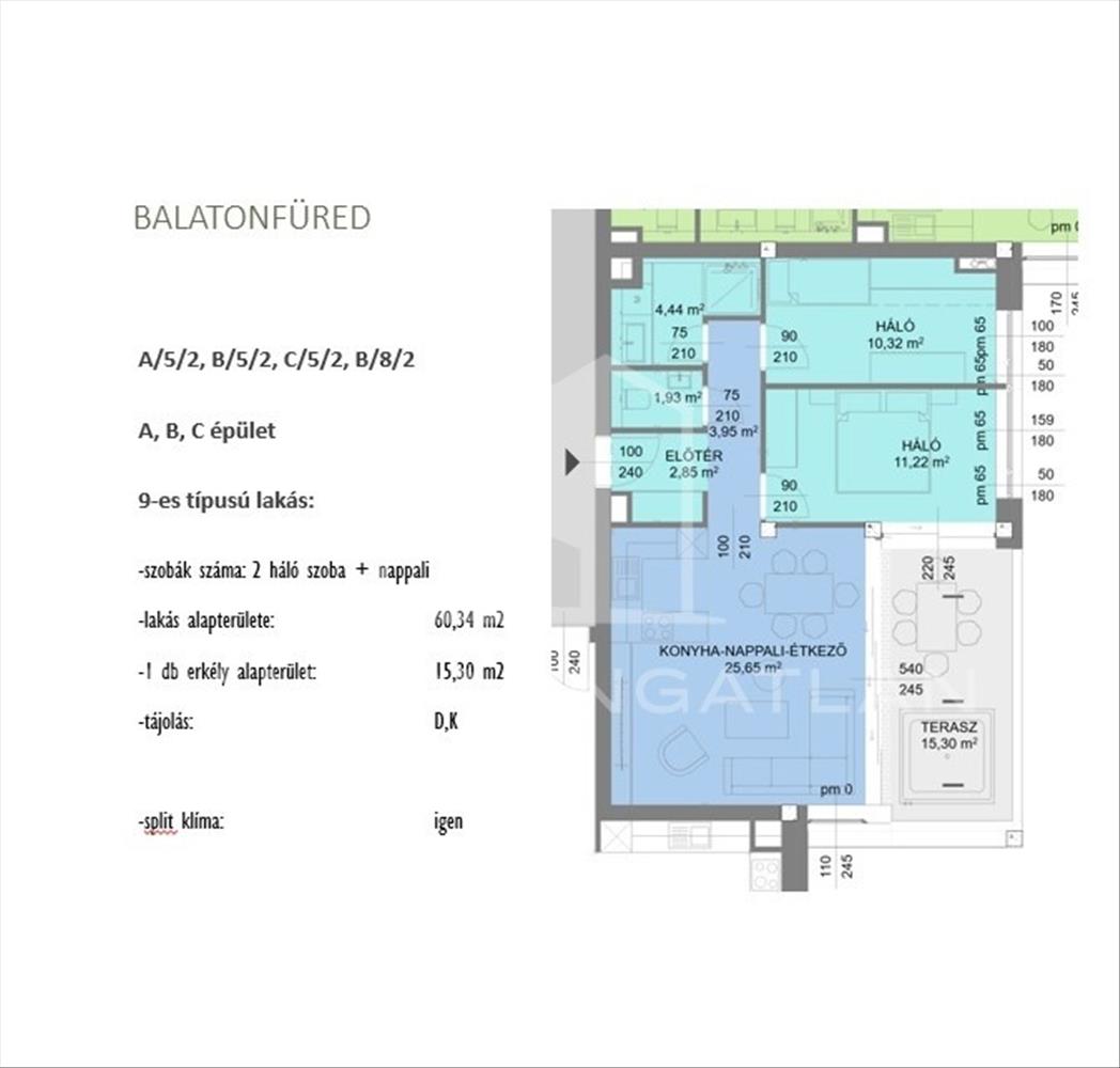 - Lakás alapterülete: 60, 34 m2