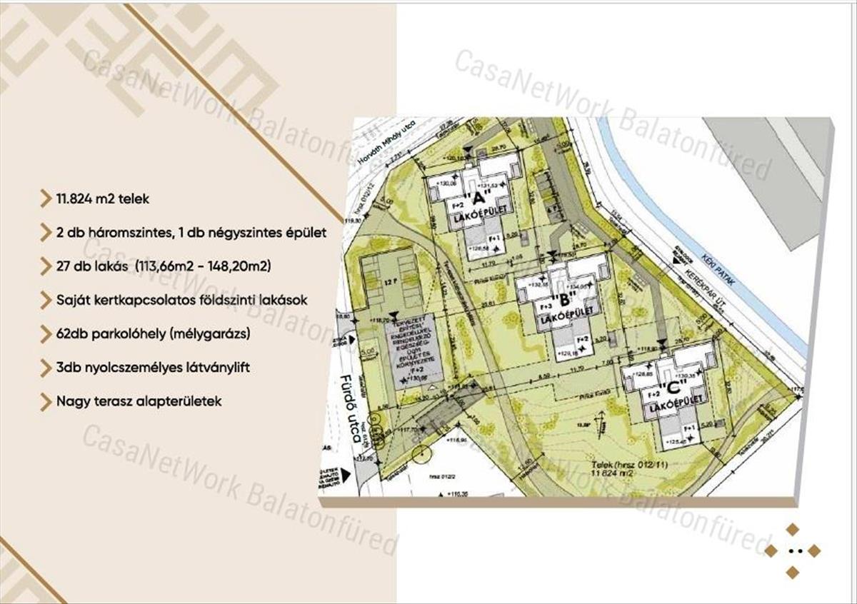 A 27 db Luxusingatlant magába ölelő komplexumot 3 lakótömb alkotja amelyek