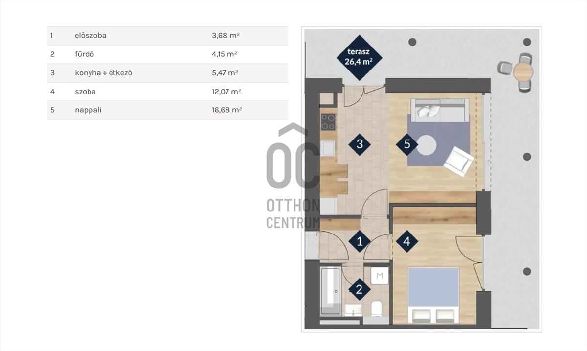 7 db 42 m2 lakás 26 m2 terasszal