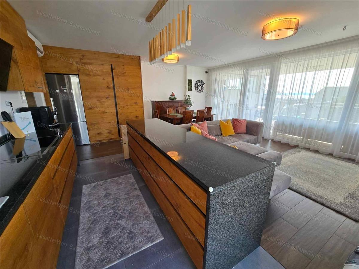 -Egyedi panorámával rendelkező 83 m2-es (+26 m2 terasz), 3 szobás újépítésű társasházi lakást Balatonfüreden, a Tamás-hegy lábánál.