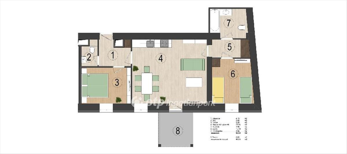 A nettó 62, 92 m2-es lakótérhez egy 6, 63 m2-es terasz kapcsolódik, így a lakás kiváló választás lehet saját használatra, nyaralónak vagy kiadásra is.
