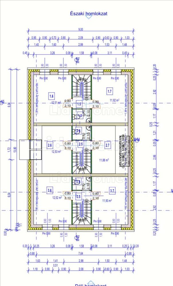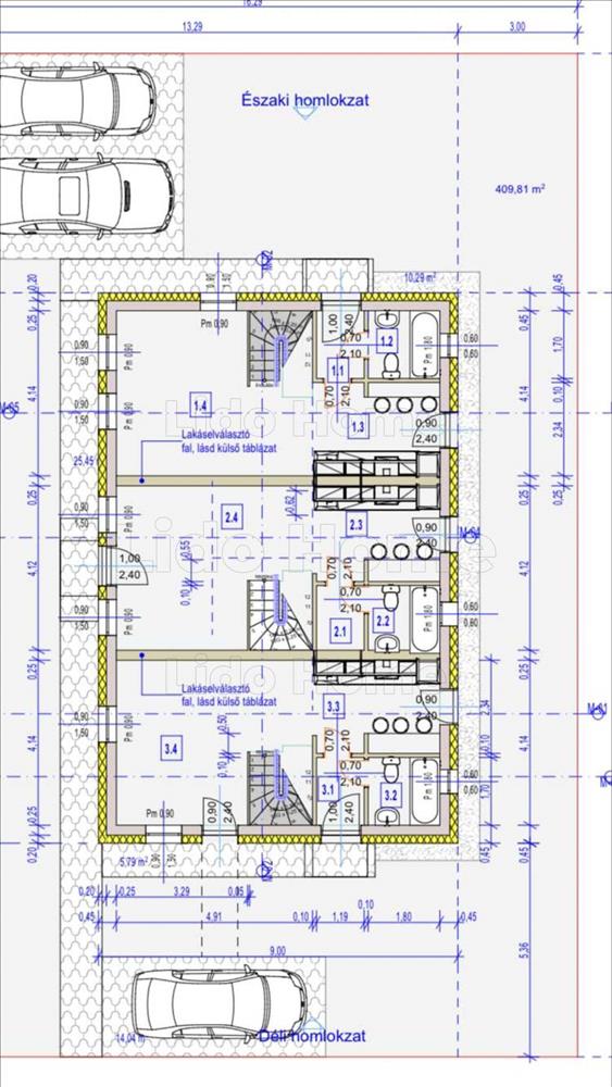 - a lakásokat elválasztó falak silka hangszigetelő téglából épült, a többi fal ytongból. a 3 lakás padlásterét tűzfalak választják el egymástól.