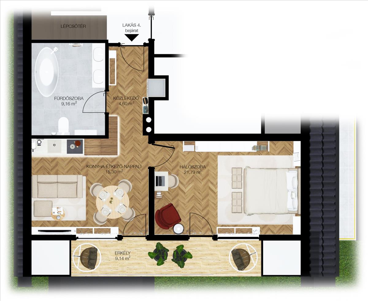 – mindössze 4 lakásos társasház