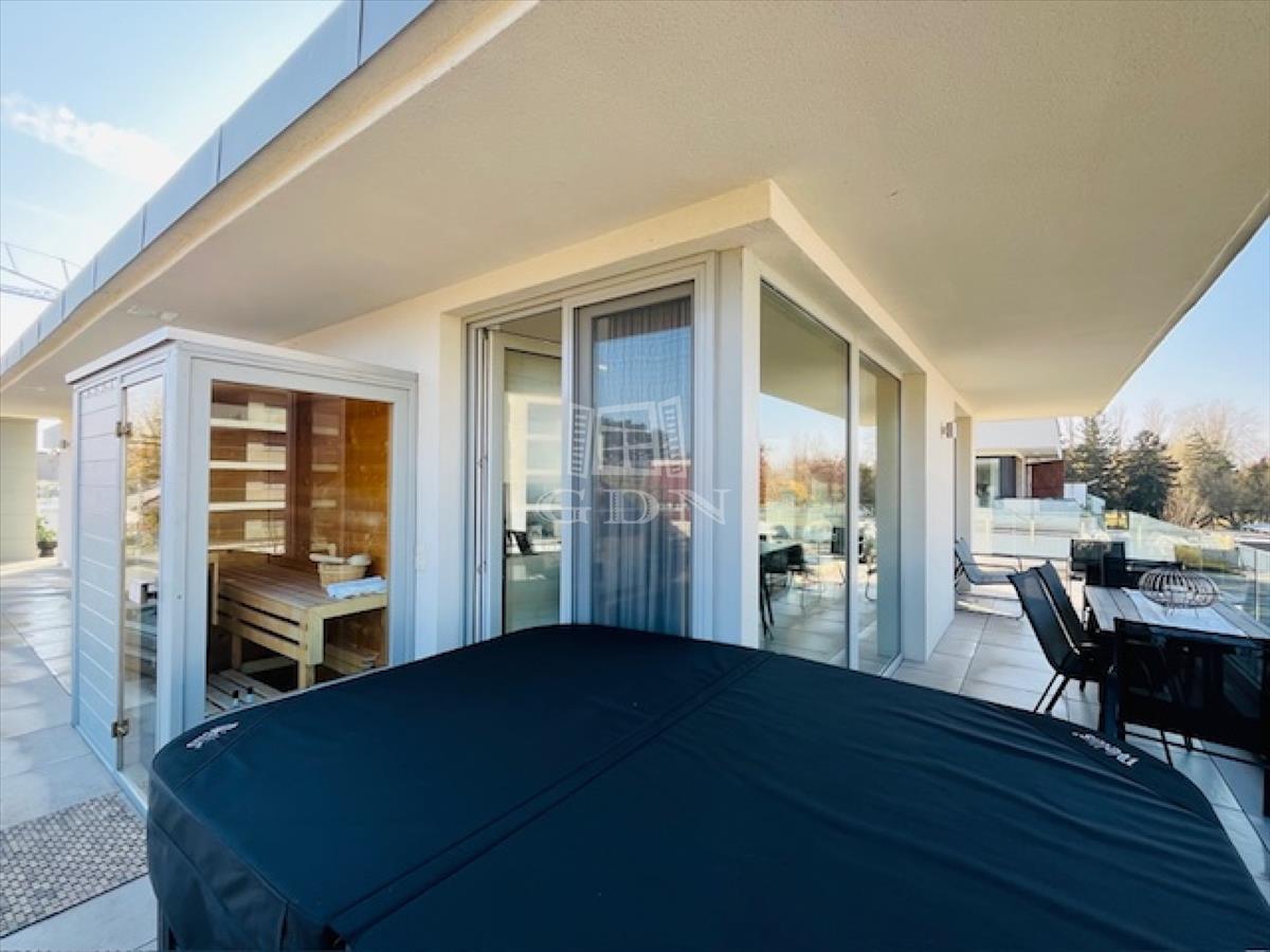 Az exklusív lakóingatlan elegáns nappali életteret, valamint kettő hálószobát és két fürdőszobát kínál a maximális komfortérzet biztosításához. a körpanorámás terasz pedig minden lehető luxust biztosít használói számára, s a teraszon bőven elférnek a szauna, a jakuzzi, valamint az étkezést és a pihenést szolgáló bútorok is.