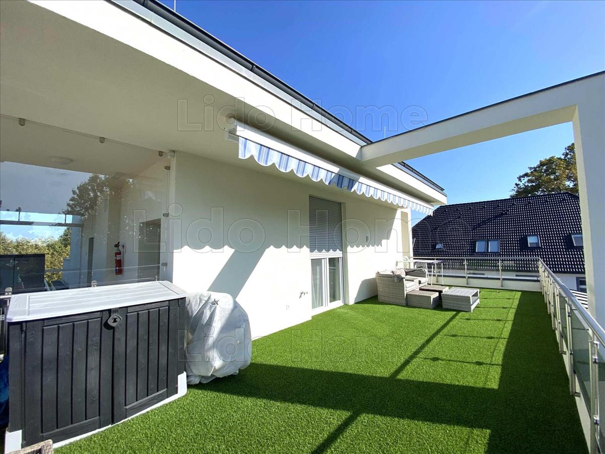 -a lakáshoz - az Északi oldalt kivéve- körben egybefüggő, minden szobából elérhető, műfűvel borított, intimen használható, extra méretű terasz kapcsolódik, 126 m2-es összterülettel.