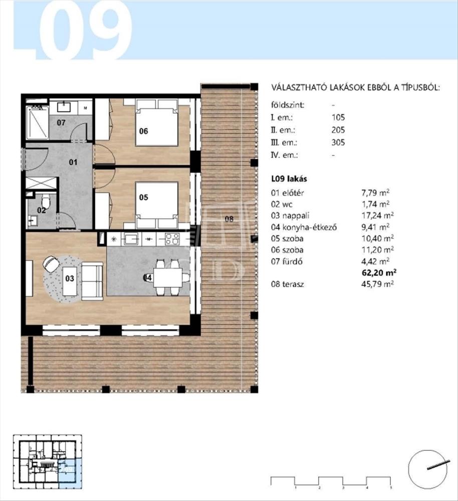 62 nm-es, 3 szobás, 46 nm-es terasszal, elismert szakmai háttérrel rendelkező tervezőiroda által megálmodott lakás, fűtéskész, 2027-ben történő átadással eladó.
