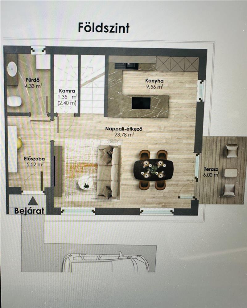 Terasz és saját kertrész