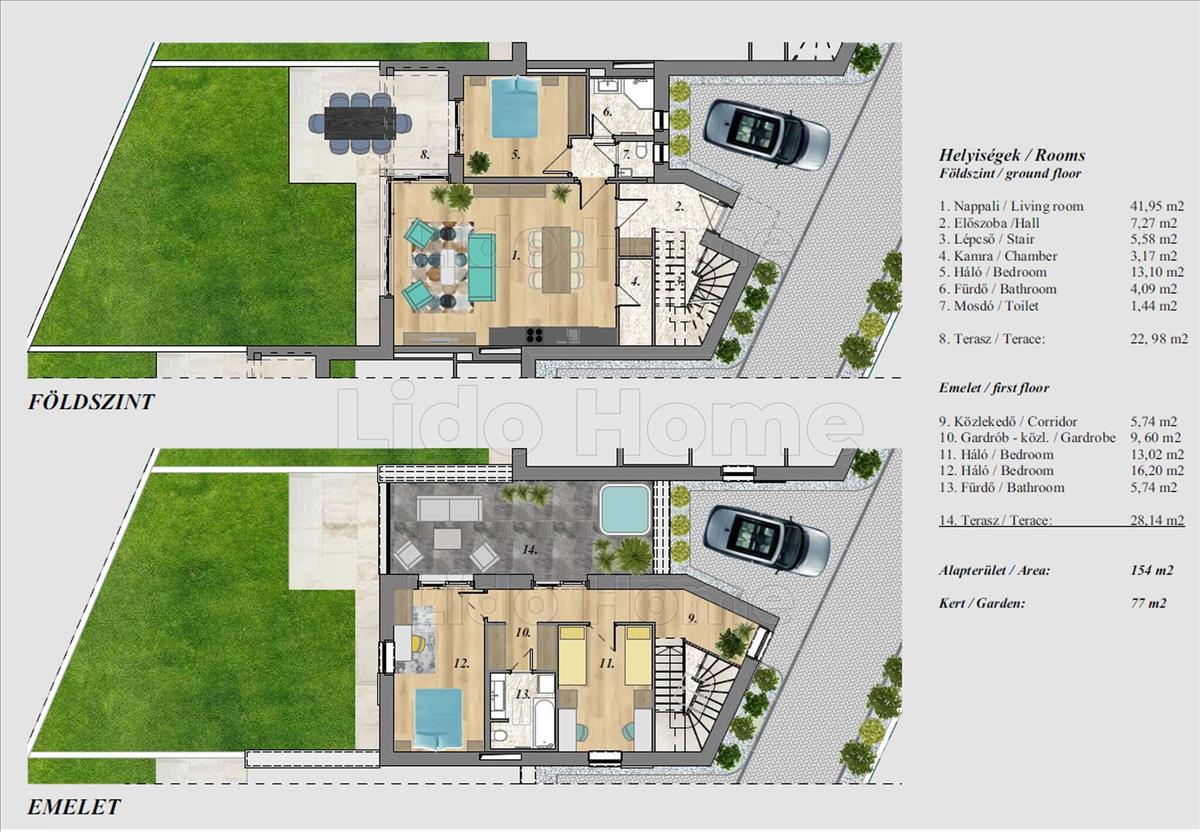 Balatonszárszó magasparton, Balatonföldvár szomszédságában belső kétszintes, sorház jellegű új építésű lakóparki lakás kizárólagos használatú kertrésszel eladó a Lido Home Siófok kínálatában.A lakóparkban összesen 9 lakás található, közöttük 3 belső kétszintes nagy alapterületű, teraszos, sajátkertes lakás, valamint 3 földszinti teraszos, saját kertes, valamint 3 emeleti, nagy teraszos lakás.