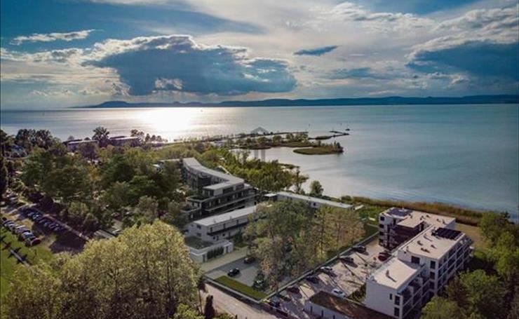 Mintegy 500m-es saját partszakasszal rendelkező 85 lakásos társasházban kínálunk eladásra Balatonszemesen