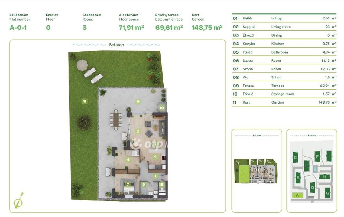 Balaton Déli part, Balatonszemes, közvetlen vízparti, 106 m2 lakás eladó. Az ingatlan a Balaton egyik legszebb vízparti lakóparkjában, természetes zöld környezetben található. a környezettudatosan épült, panorámás kilátást nyújtó, modern épületek esztétikailag és a fenntarthatóság szempontjából is kiemelkedőek, egyszerre biztosítják a kényelmes otthont és a balatoni életstílust. a különböző lakástípusok lehetőséget adnak arra, hogy minden lakó megtalálja a számára tökéletes otthont, akár az Otthon Start Hitelprogram keretében is. a földszinti lakások terasszal és kertkapcsolattal rendelkeznek, az épületek felső emeletén penthouse lakás került kialakításra. Ehhez a 72 m2-es földszinti lakáshoz kis tároló, 68 m2 terasz és 149 m2 saját kert tartozik. a lakópark nem csak elhelyezkedése miatt egyedi, minden egyes lakás a legújabb intelligens technológiával, magas minőségű és igényes alapanyagokkal, prémium extrákkal kerül kialakításra. Egyszerre komfortosak és energiahatékonyak: elektromos redőnyök, szúnyogháló, egyedileg vezérelhető hőszivattyús, fan-coilos hűtési és fűtési rendszer, okosotthon rendszer, beléptető rendszer, riasztórendszer. Az ingatlan értékét növelik a következő szolgáltatások: a területen kialakított gondnoki, üzemeltetési iroda; zöldterületbe illesztett játszótér; zárt, privát vízpart több, mint 130 méteren; partmenti stég; közel 120 m2 vízfelületű strandmedence 16 m2-es gyermekpancsolóval; automata öntözőhálózat a lakóépületek közötti zöldfelületek öntözésére. OTP Ingatlanpont és Pénzügyi Pont irodánk teljeskörű támogatást nyújt az ingatlan kiválasztásával, megvételével, biztosításával és finanszírozásával, akár egyedi kedvezményes hitelekkel, befektetési lehetőségekkel kapcsolatban is. Bővebb információért keressen telefonon!