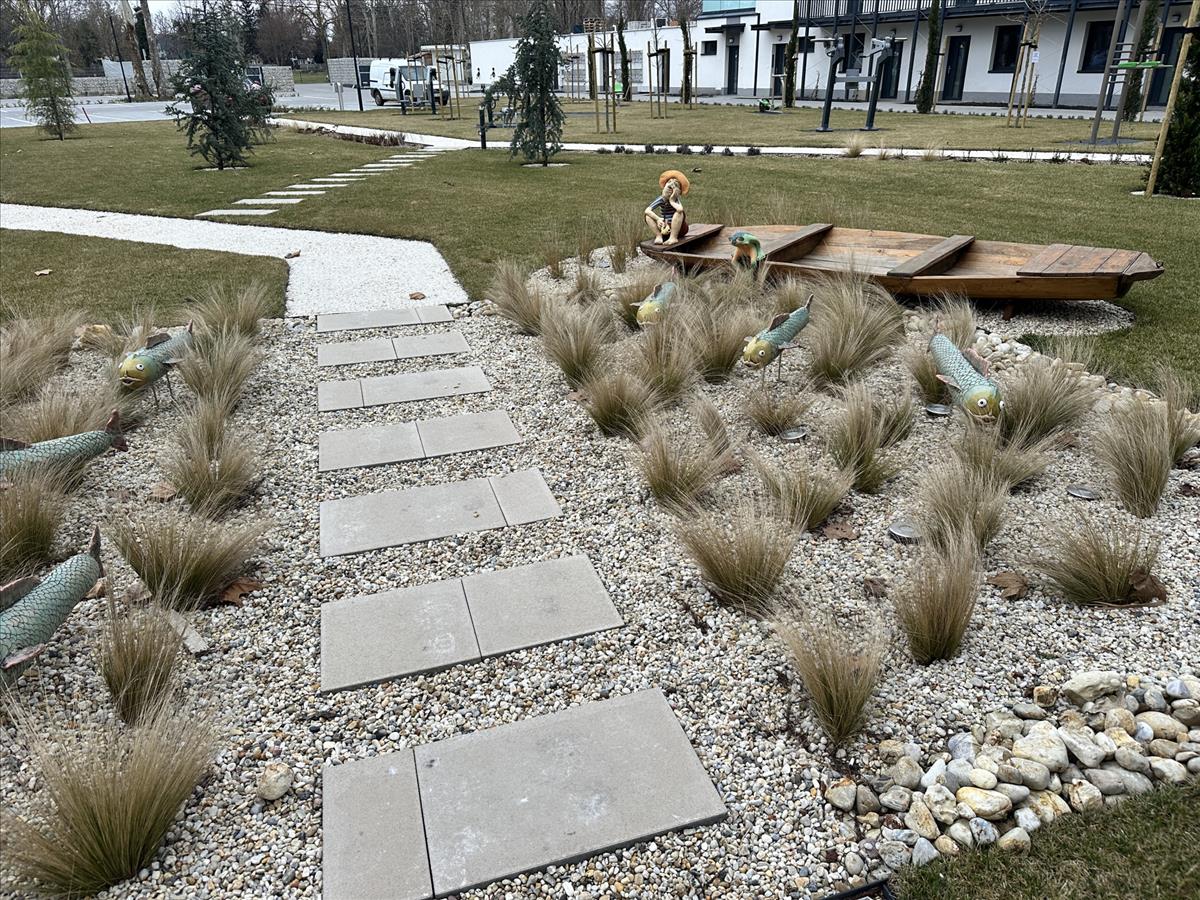 - kültéri fitness parkkal és játszótérrel