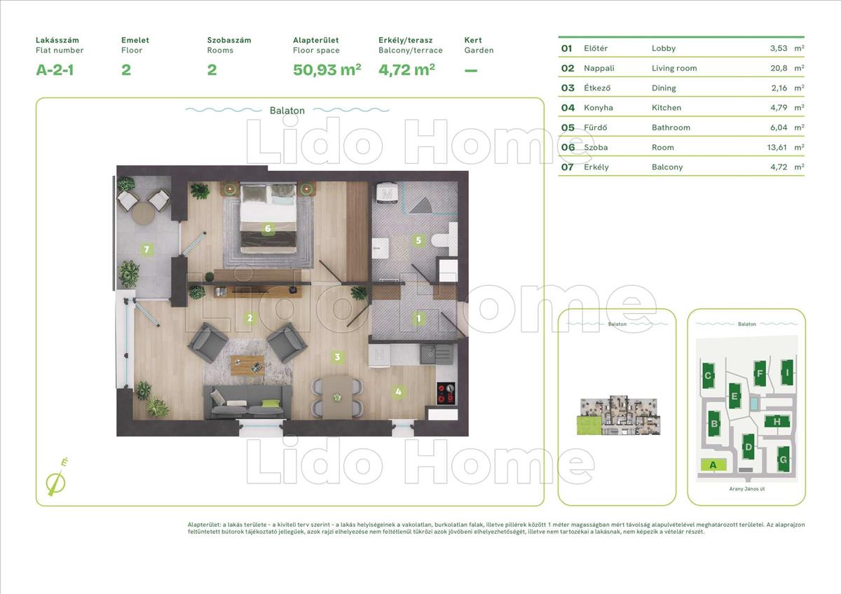 A 2. emeleti délnyugati tájolású lakás nettó alapterülete: 50, 93 m2 a hozzá tartozó erkély mérete: 4, 72 m2.