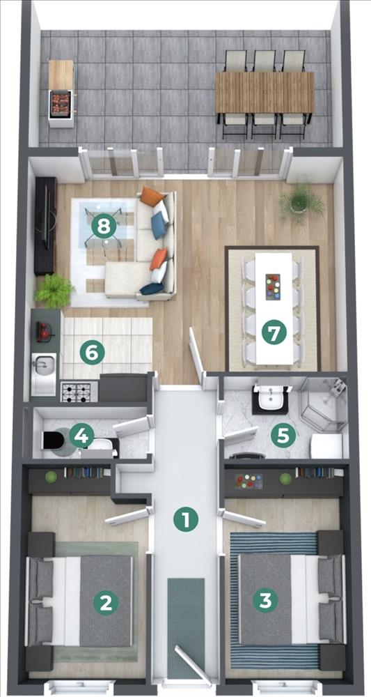 A kulcsrakész lakások és üdülők mind prémium minőségű anyagokból készültek, neves gyártók (Mirage, Caesar, fap, Laufen, Hansgrohe, Geberit, Ravak) termékeivel, korszerű fűtés - hűtés rendszerrel ingatlanonként.