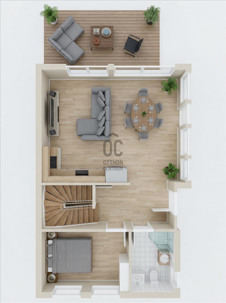 Terasz: van, 15 m² (földszint, kertkapcsolatos)