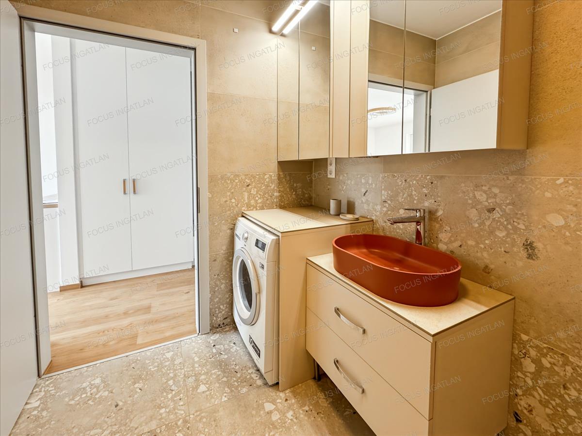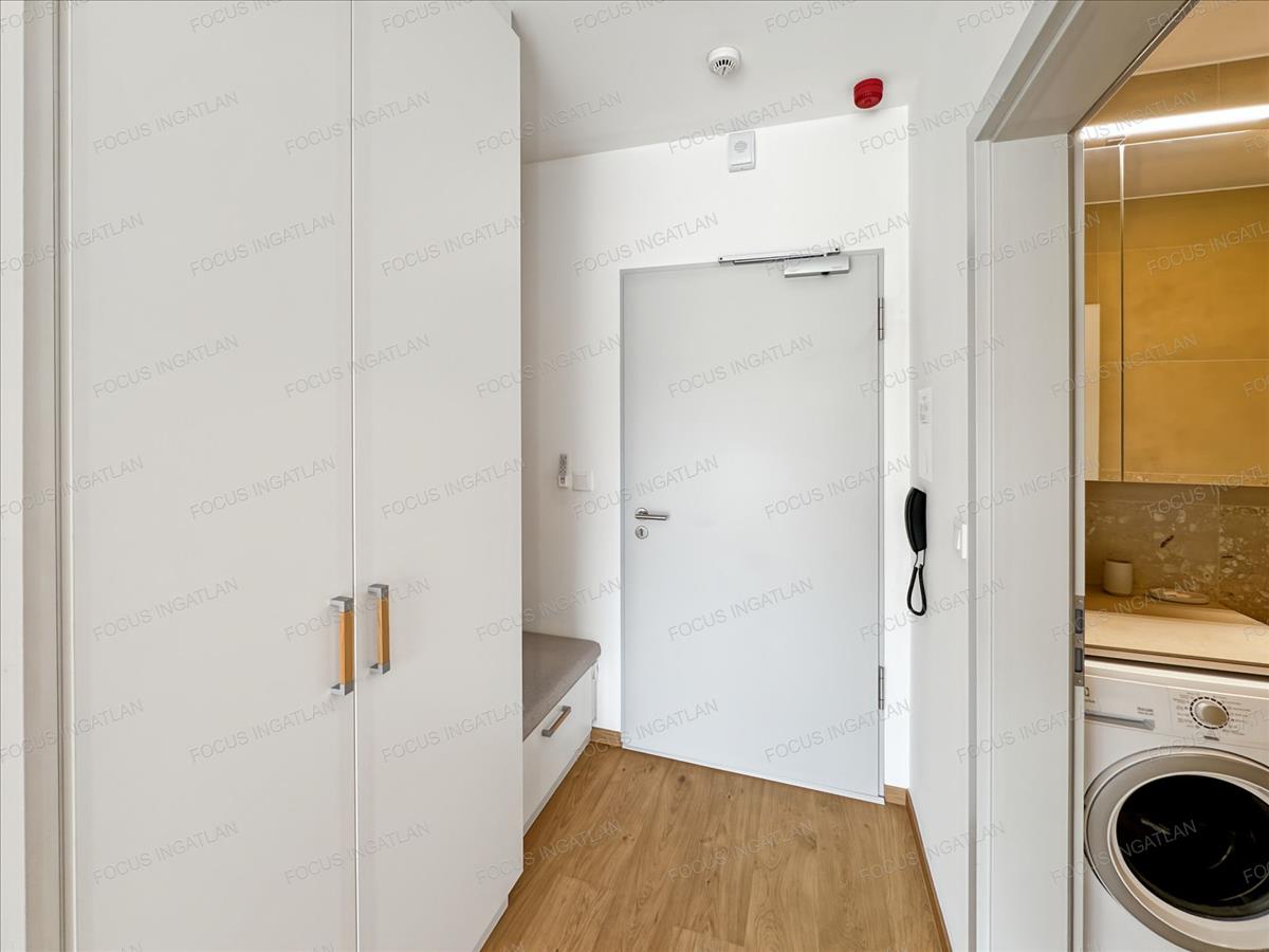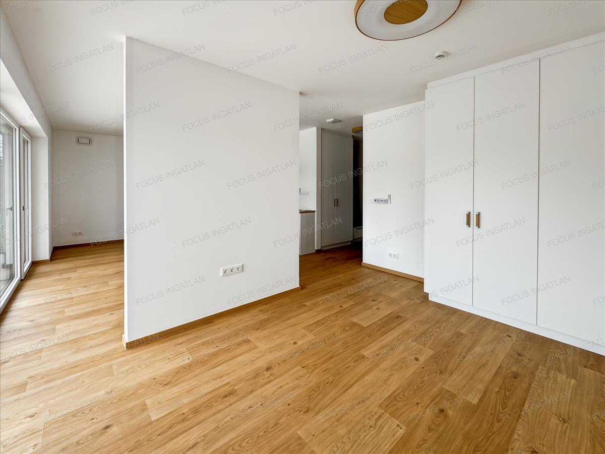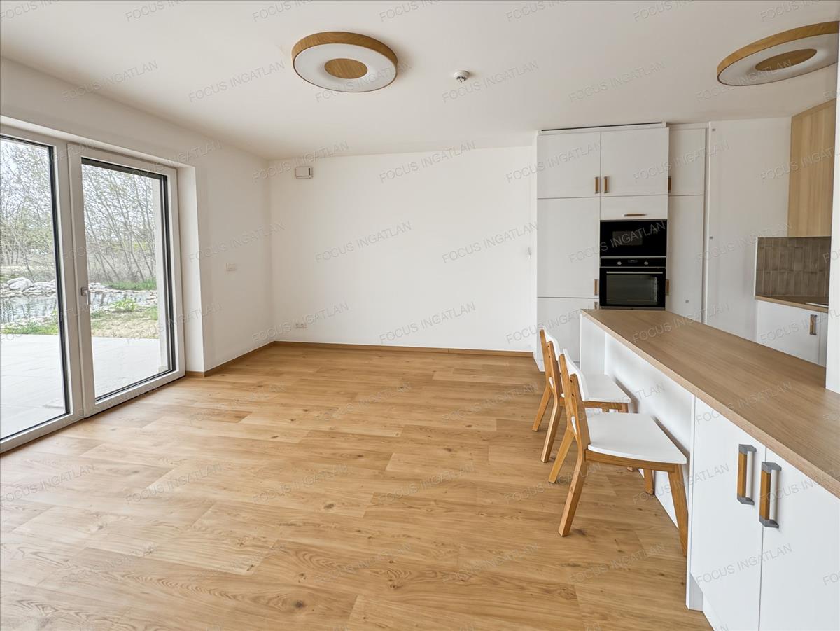 Prémium belső: Egyedi, gépesített konyha (beépített Electrolux gépekkel), elegáns fa és fehér felületek, beépített gardróbszekrények.