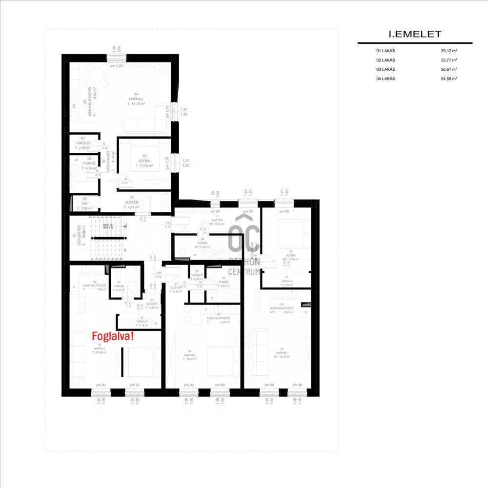 A hirdetésben szereplő 1. emeleti, lakás 57 m2-es.