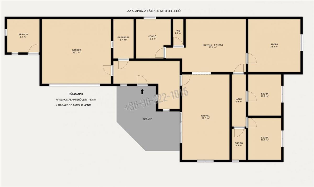 •Tároló (9 m²): külön wc és kézmosó, vendégváró vagy kertészkedési eseményekhez is ideális