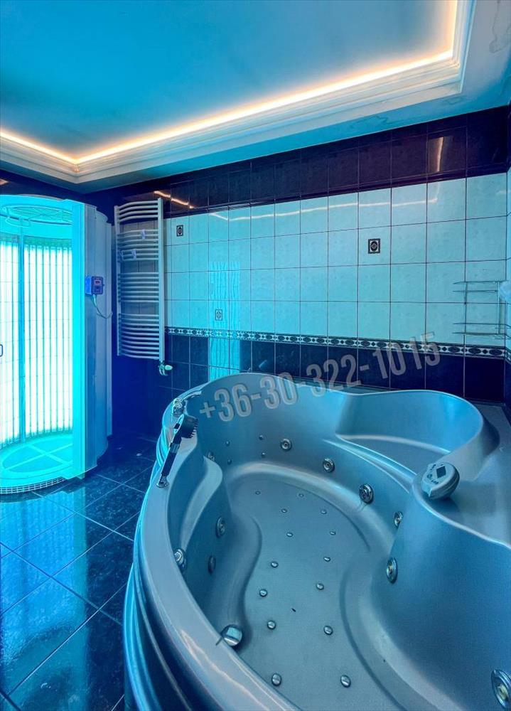 Modern burkolatok, pezsgőfürdős kád, kiváló fényviszonyok, funkcionális kialakítás.