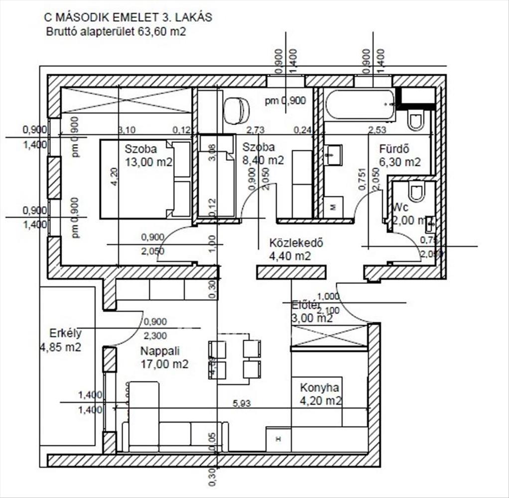 • Alapterület:58 m2