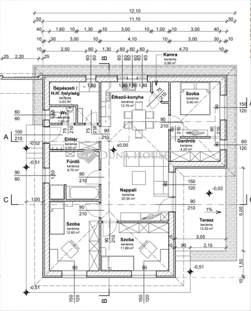 A kényelmet tovább növeli egy praktikus, két autó számára kialakított garázs, valamint egy tágas, 13 m²-es terasz, ahol a család és a barátok kellemes órákat tölthetnek együtt a szabadban. a kivételes minőségű építőanyagok és a modern műszaki megoldások biztosítják az új tulajdonos számára nem csupán egy csodálatos otthont, de egy rendkívül energiahatékony és fenntartható lakóteret is. FIX 3% lakáshitelre megvehető