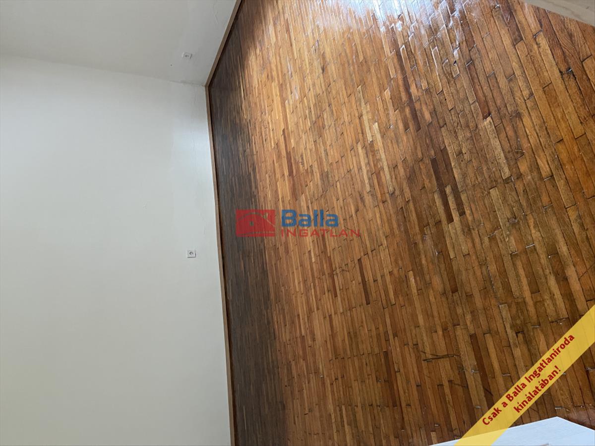 A szoba burkolata parketta, a fürdőszoba, konyha és közlekedő járólapos.