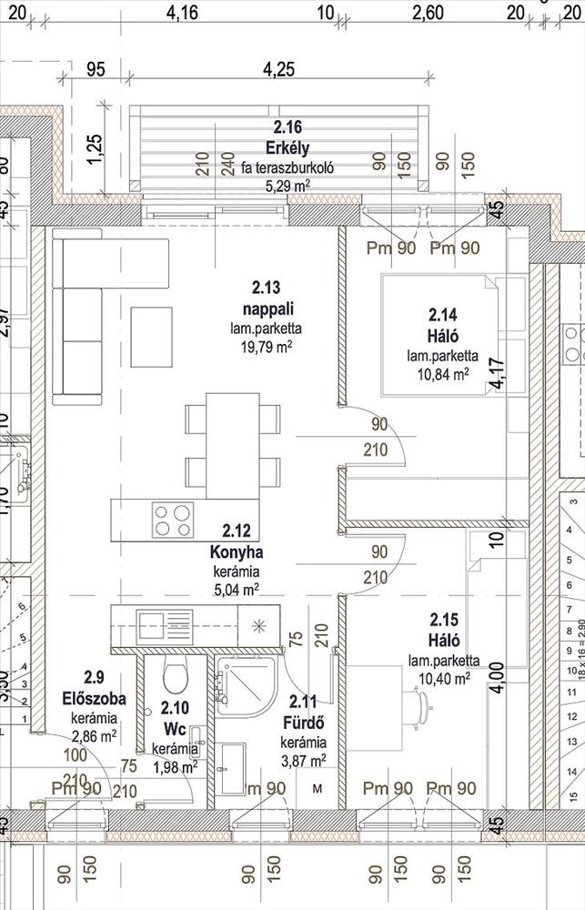 -Az alapterülete 54, 79 nm. (Amerikai konyhás nappali + 2 hálószoba)