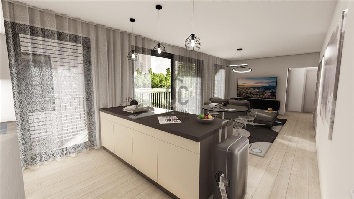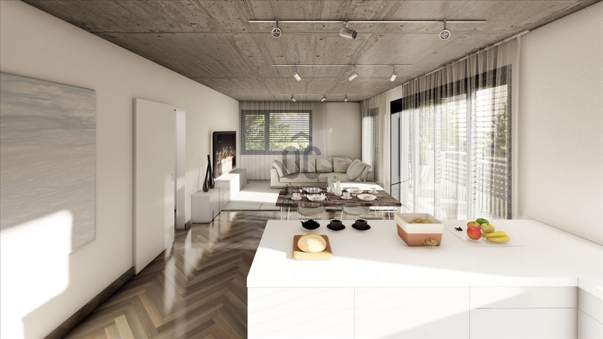A 2. Lakás szintén földszinti, azonban nagyobb, 118, 56 m² alapterülettel rendelkezik, amelyhez egy kiemelkedően tágas, 32, 78 m²-es terasz kapcsolódik, így ez az otthon különösen ideális azok számára, akik a belső és külső életterek egyensúlyát keresik. a 25 m²-es nappali-étkező, a 11, 17 m²-es konyha és a három hálószoba mellett itt is két fürdőszoba szolgálja a kényelmet.