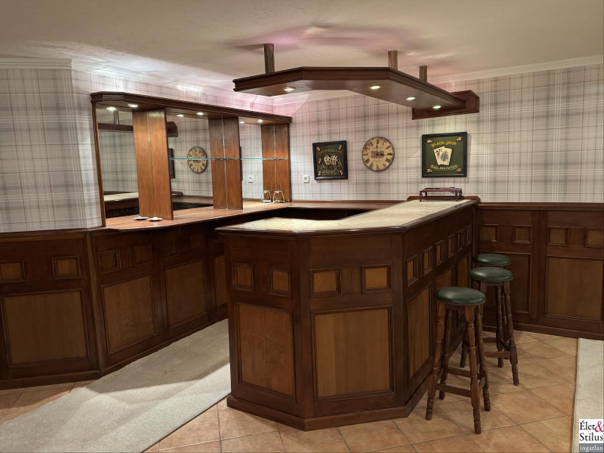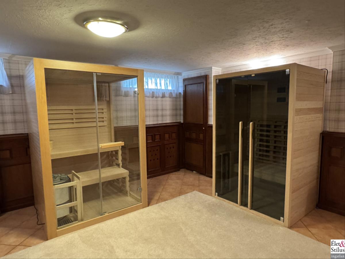 Hatalmas, kandallóval felszerelt nappali, ezen felül egy külön, üveggel leválasztott Nap szobának nevezett, fényárban úszó társasági helyiség, előtér, étkező, teljesen felszerelt, gépesített, konyha és vendég mellékhelyiség biztosítják a mindennapi kényelmet, magas színvonalú ottlétet és akkor még nem említettük az alagsorban kialakított, úgymond rekreációs teret, ahol tornázni, ejtőzni és még két szaunaháznak köszönhetően, finnszaunázni és infraszaunázni is lehet.
