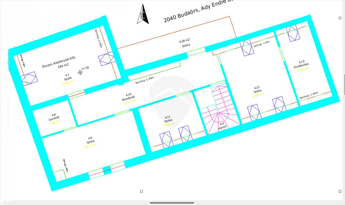- Tájolás:DNY