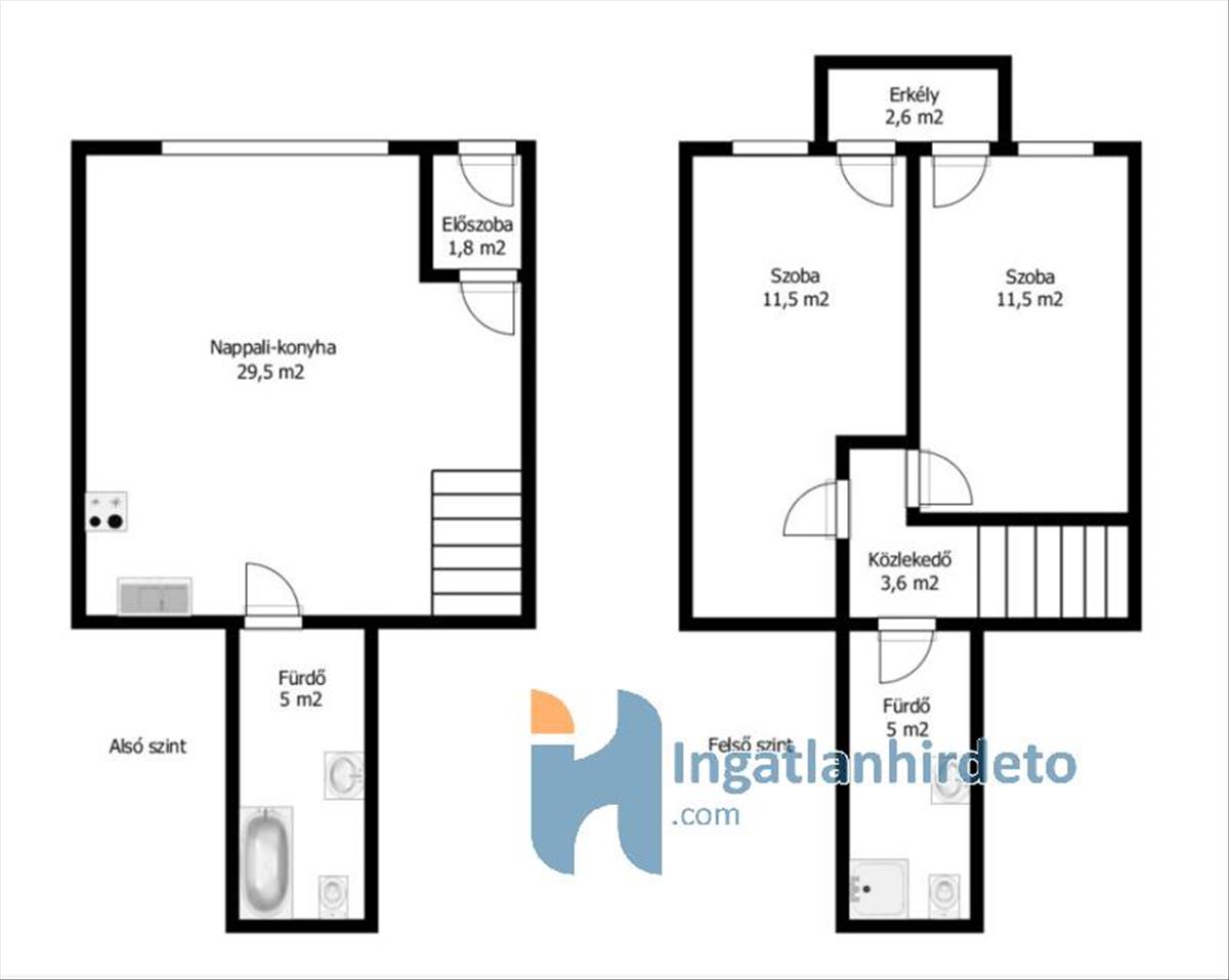 - dupla fürdőszoba káddal és zuhanyzóval
