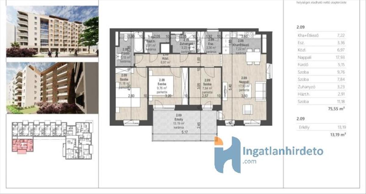 Elhelyezkedése: Társasház Emeleti elhelyezkedés: Emeleten Emelet száma: 2 Épület emeleteinek száma: 7 Tájolása: Déli tájolású Állapota: új Komfort besorolása: Dupla komfortos Építési éve: 2027 Alapterülete: 76 m2 Szobák száma: 4szoba Fűtés típusa: Padlófűtés, Fan-coil, Hőszivattyú Homlokzat állapot: új Építési mód: Tégla Parkolási lehetőség: Garázsban Kilátás: Udvari kilátás Napelem: Nincs Jellemzői: Alacsony rezsi, Csendes környék, Jó közlekedés Energetikai besorolás: a+ Egyéb jellemzők: Erkély, Lift Tv, Internet: Kábeltévé, Internet Terhelések: Tehermentes ingatlan Eladásra vonatkozó információk: Kizárólag magánszemélyek jelentkezését várjuk