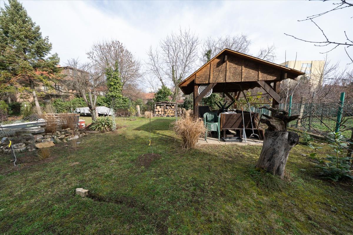 A közös kertben található egy fedett szaletli a nyári kerti partikhoz és grillezésekhez.