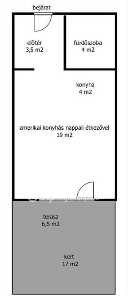 Alapterület: 42 nm (hivatalosan 31 nm ) + terasz + saját kert