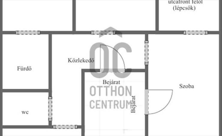 Utcafrontról nézve félszuterén, kisebb ablakai vannak, viszont egy a teljes nagy kapus bejárat miatt a felújított lakáson kívül számításba vehető különböző funkciókra alkalmas üzlethelyiség.
