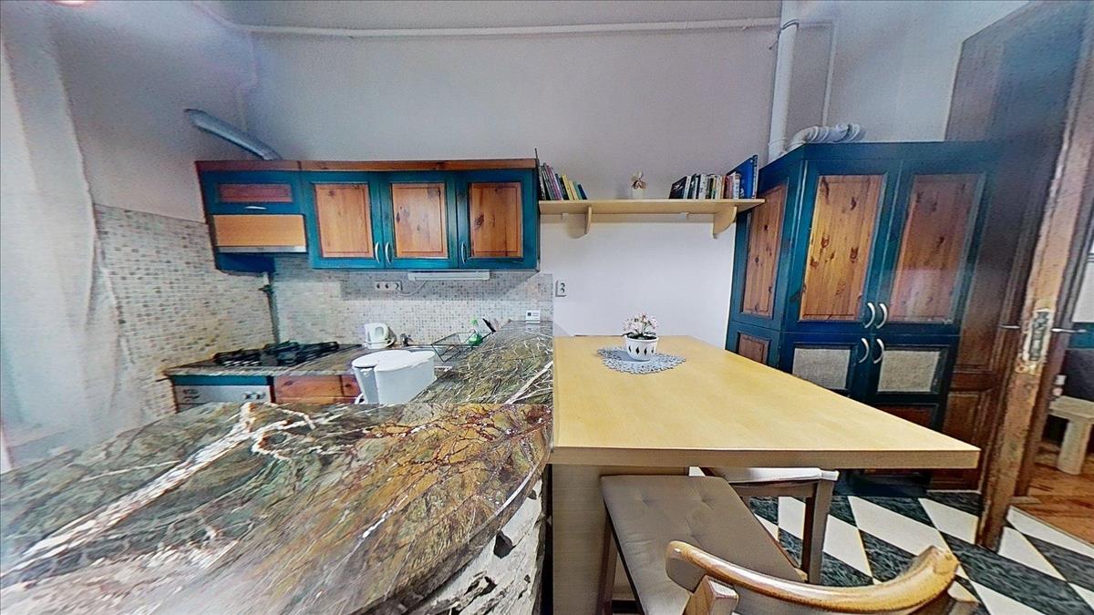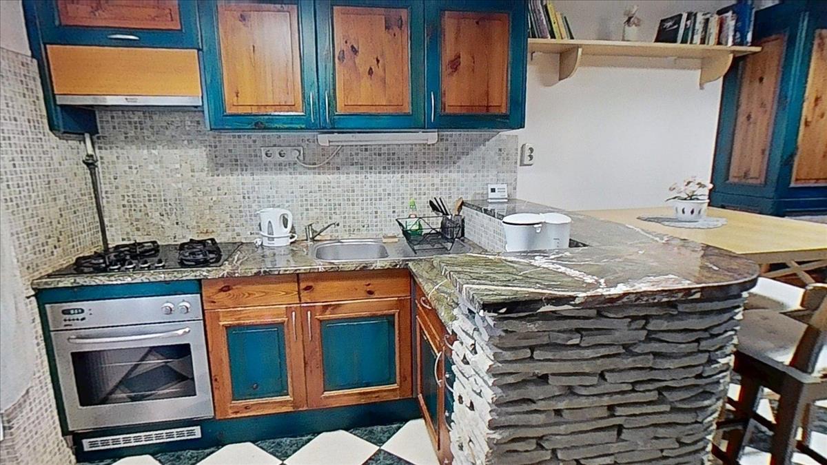 A konyha teljesen felszerelt, a munkapult márvánnyal borított, amely egy szintén márványborítású bárpulttal is ki van egészítve.