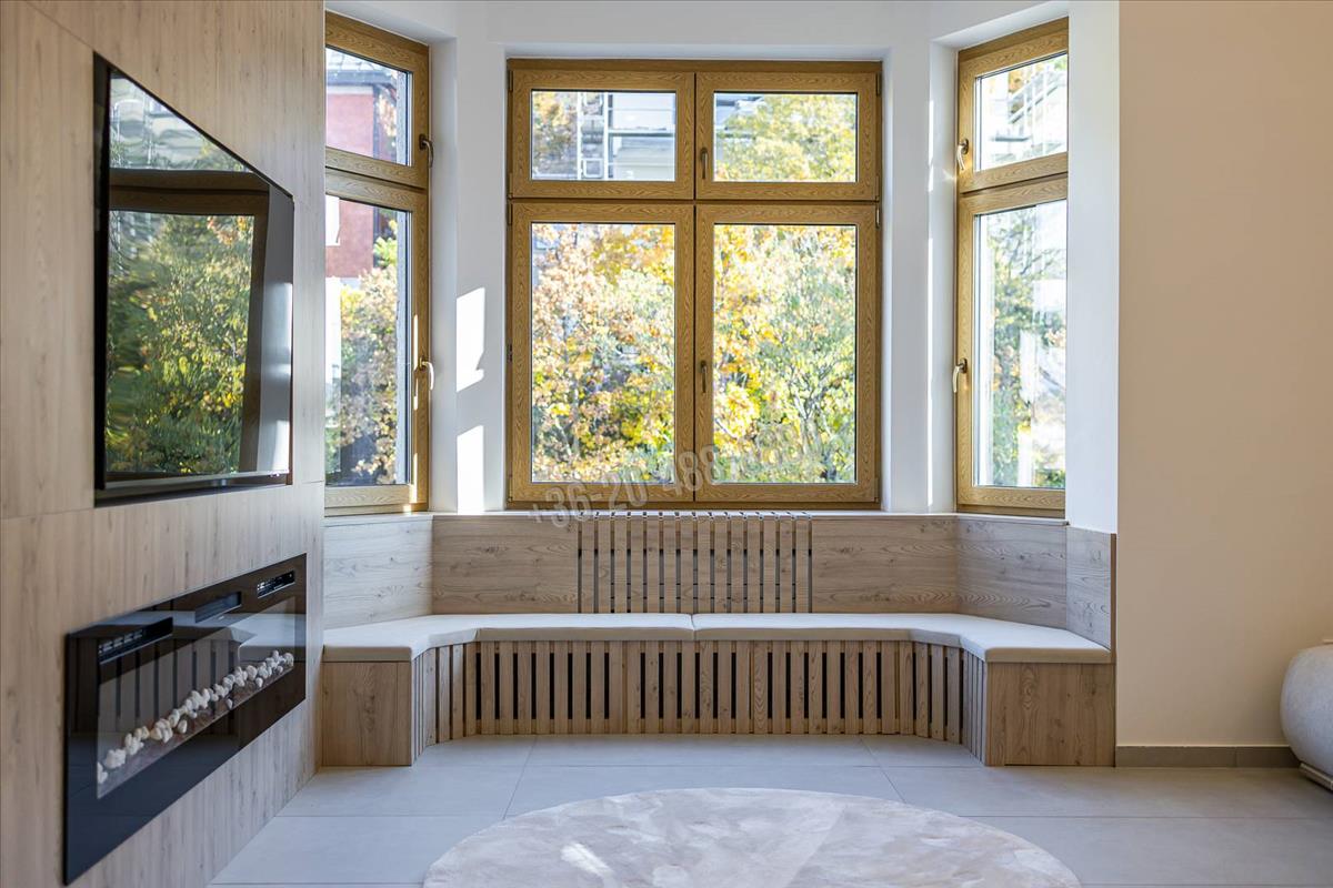 A teljes külső nyílászáró cserének köszönhetően, 3 rétegű hang-és hőszigetelt ajtók és ablakok, redőnyök beépítésével a tulajdonosok zavartalan pihenése biztosított. a felső emeleti elhelyezkedés, a nagy belmagasság és a több front felé nyíló ablakai révén a lakás minden napszakban világos.