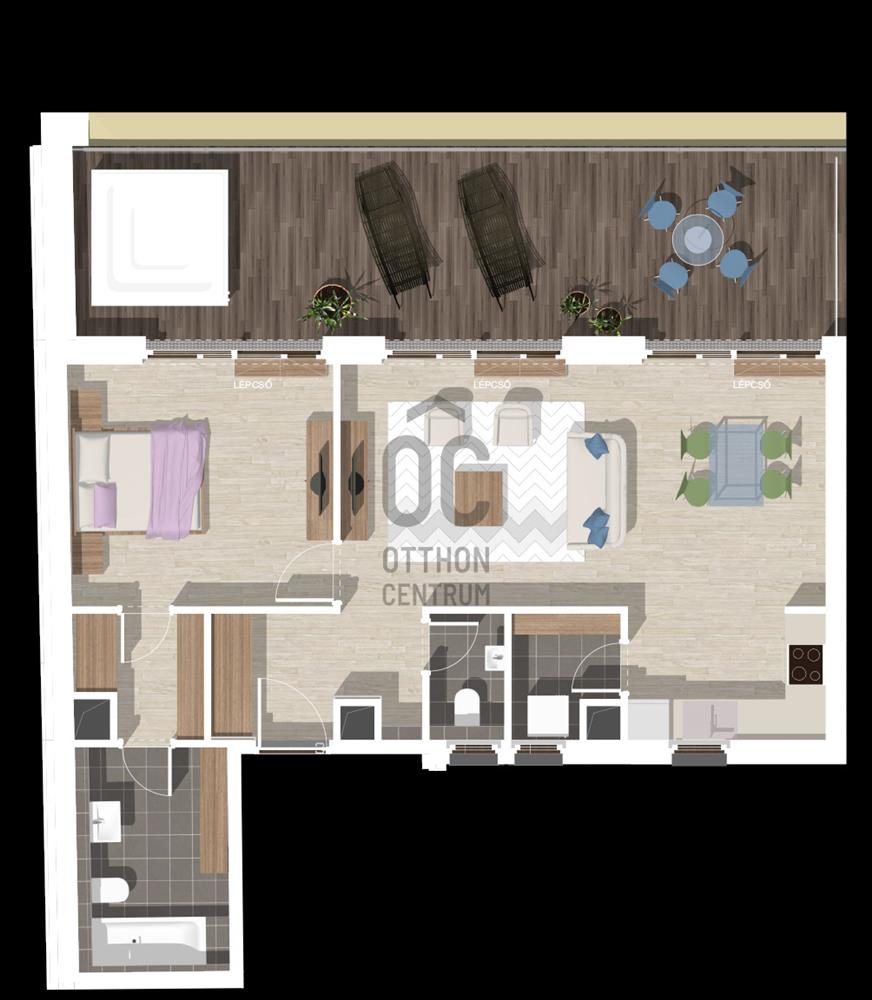 Lakás: 65, 59 nm + 31, 84nm terasz, 2 szoba