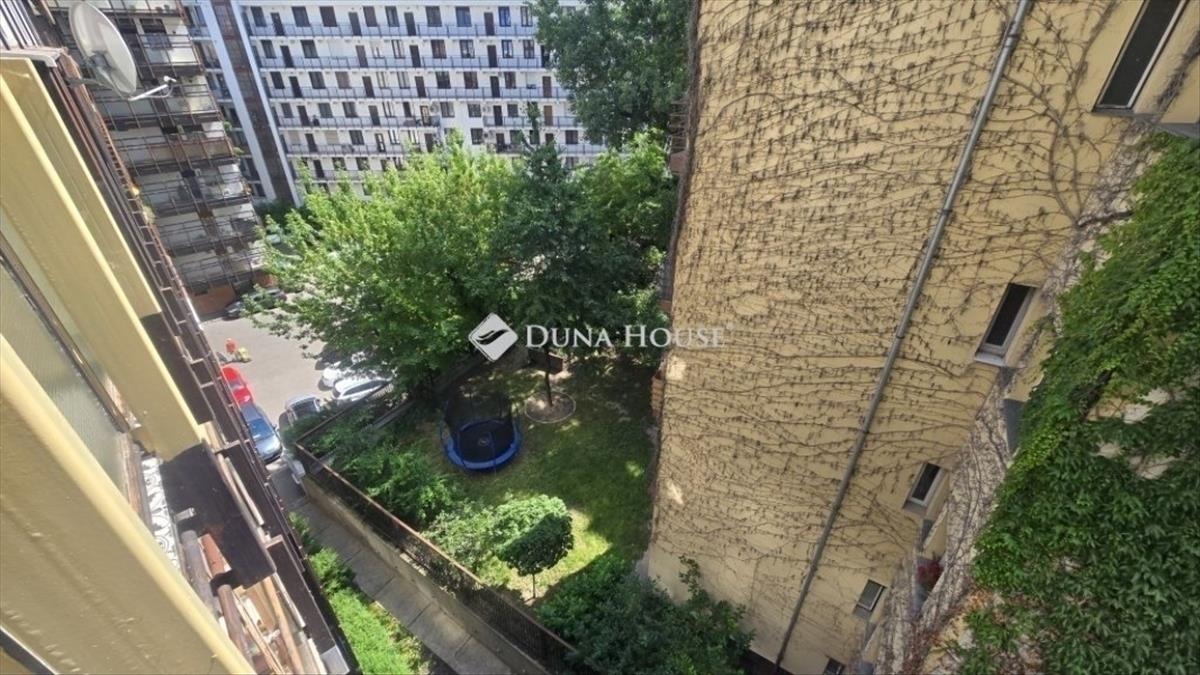 A nyüzsgő Lövőház utca, a sok kis étteremmel, pubokkal, csupán néhány lépés, a lakás mégis nagyon csendes, mert zöld kertre néz.