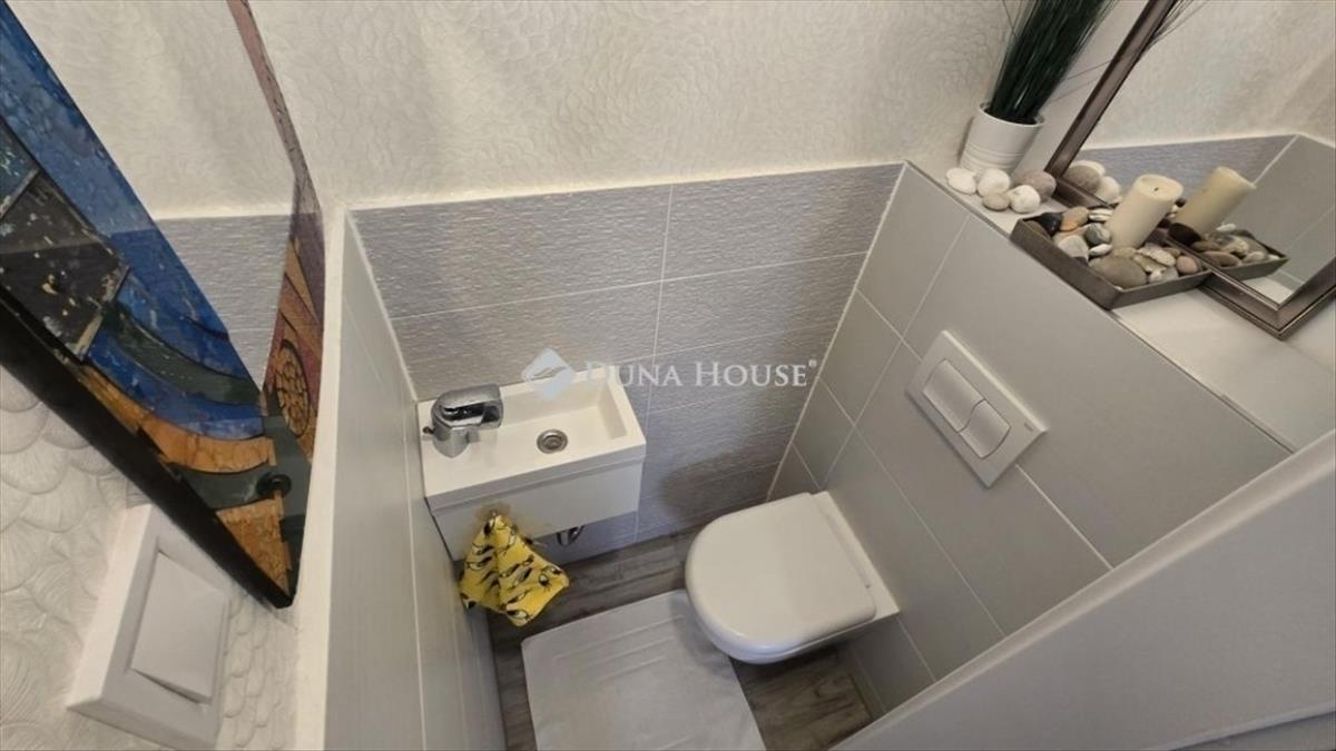 Az előszobában tágas beépített gardrób szekrény. Házközponti fűtés, alacsony rezsiköltség.