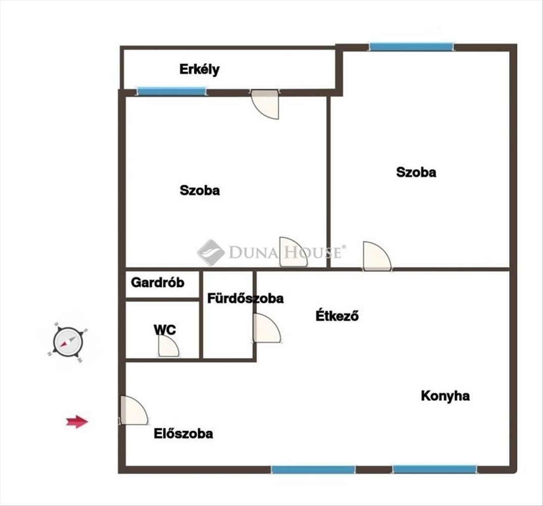 Elosztás: 2 külön nyíló szoba + tágas konyha-étkező