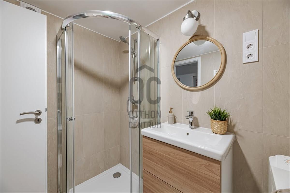 * zuhanyzós fürdőszoba, modern meleg vizes bojler, törölközőszárító, ventillátoros elszívó, mosógép