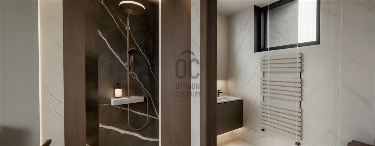 A lakás hőszivattyús hűtés-fűtés és hővisszanyerős szellőztető rendszerrel készül, amely energiatakarékos és környezetbarát megoldást biztosít. Loxone okos otthon rendszer kerül beépítésre, fokozva a kényelmet. a nagy üvegfelületek maximális természetes fényt engednek be, míg a prémium burkolatok és belsőépítészeti részletek a legmagasabb igényeket is kielégítik. a lakáshoz két garázs (30 000 000 Ft/2db) és egy tároló (12 000 000 Ft) is tartozik mely igény szerint megvásárolható.