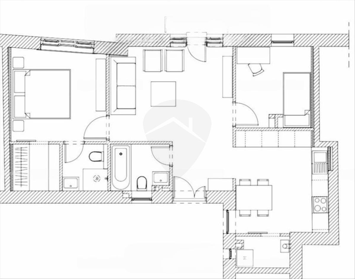 Tökéletes elosztás: Tágas amerikai konyhás nappali + 2 külön hálószoba.