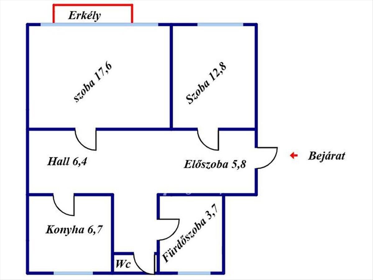 Alapterület: 53 nm (2 külön nyíló szoba + erkély)