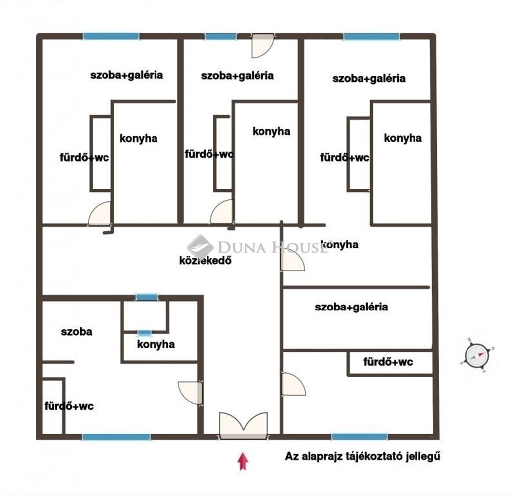 - 4 galériázott szoba, saját konyhával, fürdőszobával + WC