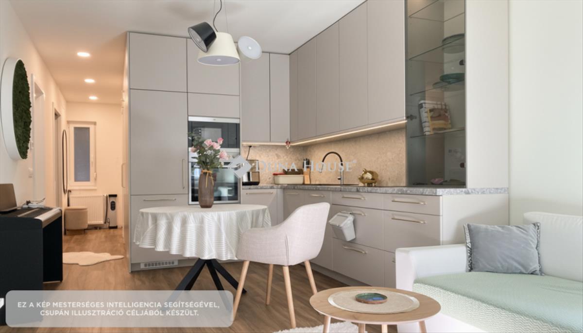 Saját garázs és tároló, valamint kertkapcsolatA lakás minden részletében a tudatos tervezés köszön vissza: nemcsak szép, hanem élhető, logikus és hosszú távra is kényelmes otthon.