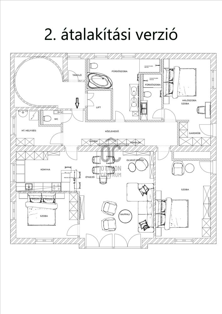 Ez a ház egy társasházzá történő átalakítási projekt része, amelyben a lakások átalakíthatók, így ennek a lakásnak az esetében a vevő 5 féle elrendezés közül is választhat. Az átalakítást a vevő igénye szerint az eladó elvégzi.