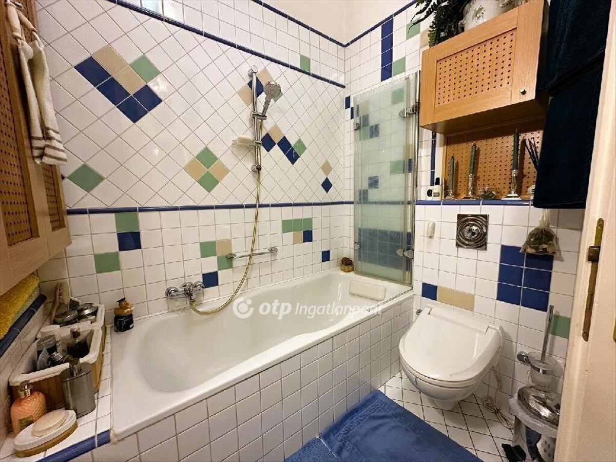 A lakás duplakomfortos, a fürdőszoba és a mellékhelyiség burkolatai és díszítőelemei egységes stílust képviselnek minőségi Hansgrohe szaniterekkel. a wc beépített bidével rendelkezik, a fürdőkád praktikus, összecsukható paravánnal felszerelt, a további tárolóhelyek pedig a mindennapi kényelmet szolgálják. a tágas konyha teljesen gépesített, a szekrények kamraként funkcionáló, jól szellőző tárolórészekkel vannak ellátva.